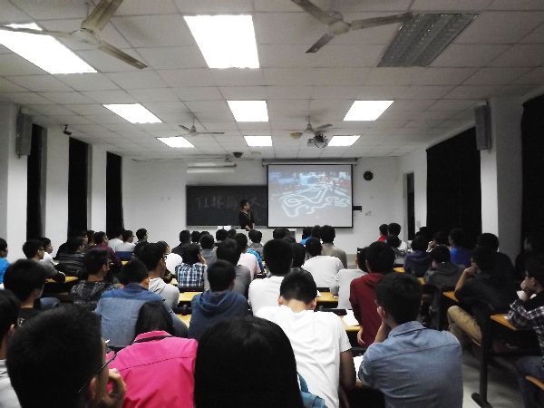 关于如何去制作一辆智能车这方面的内容由科技部部长郭水平为同学们解析。他通过智能车与“四驱赛车”玩具车的形象对比,让同学们清楚地了解智能车的构造。郭部长还详细地介绍了各个部件的功能和制作。讲座的末尾,智能车队队长林德荣上台向同学们简述了参加此项比赛可以得到的收获,同时他希望各位同学能学会更多的东西。