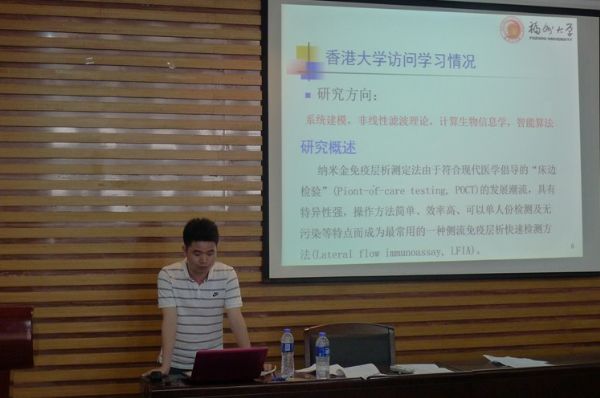 在陈嘉鹏同学简短的介绍后,得知这位年纪与同学们一般大小的曾念寅博士却早已光环荣誉环绕。随后在同学们殷切期待中,曾念寅博士开始了报告。他结合自己的学习、科研经历和在香港大学访问的所见所闻所思所感,和同学们深入交流探讨了课题研究的过程与方法,以及在科研论文的撰写中的难度与投稿成功的关键点。最后,曾博士告诫同学们“成功没有捷径,只有汗流满面。品味其中,才能乐趣无穷” 。