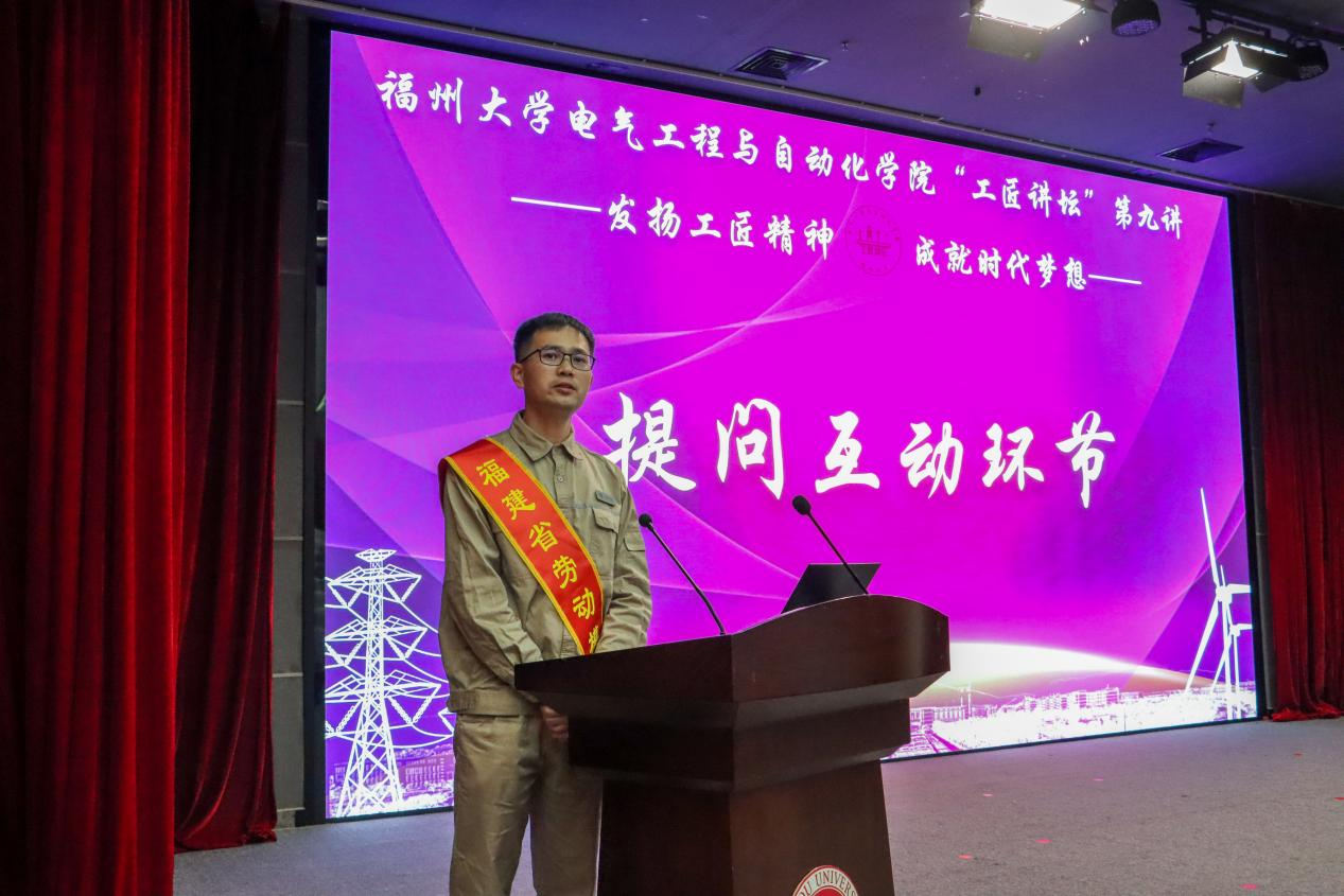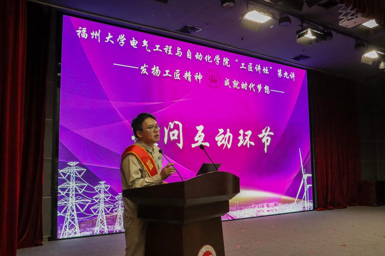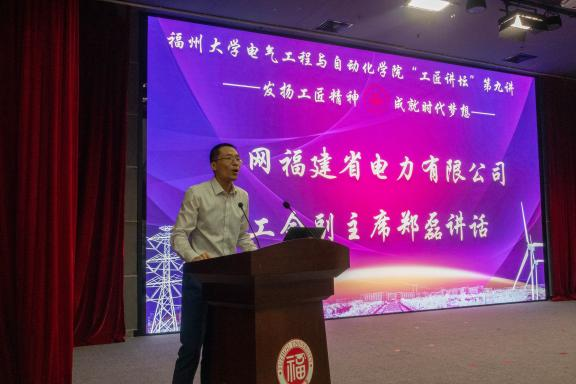 会议伊始,郑磊主席发言。他指出,与会者有着共同的电气相关专业背景,希望本次活动大家能保持同频共振,一齐感悟工匠精神。同时,他还鼓励学院学子们,要以工匠精神为引领,追求卓越,精益求精;要以劳模工匠精神筑牢理想信念根基,探索创新,勇于担当,不断提升专业技能和综合素质。
